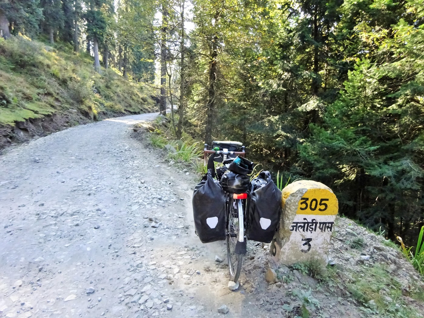 The Jalori Pass is an infamous pass in Himachal Pradesh, in north-west India, between the Beas and Sutlej river valleys. It seemed like a good idea to attempt it with my fully laden touring bike, Reggie, while I was cycling my circuitous route from Amritsar to Kathmandu.